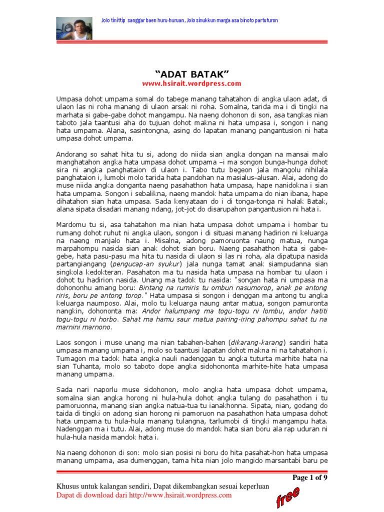 Bit.ly/33b9flv pada dasarnya, gaya umpasa sidohonon di ulaon adat batak,tingki ulaon tardidi ianakkon, dohot hata sidohonon tingki.